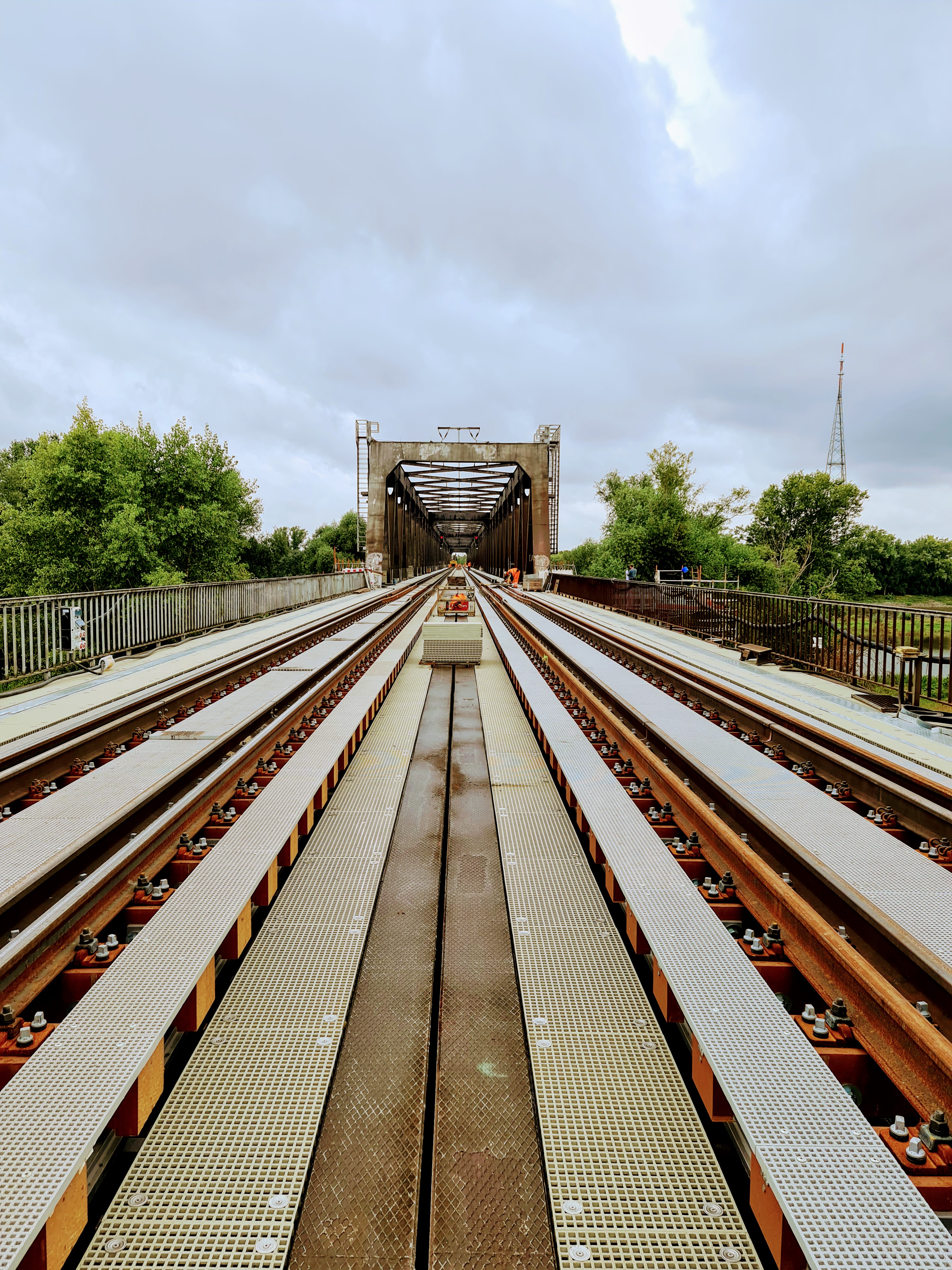 As part of the renovation of the Herrenkrug Bridge in the east of Magdeburg, the superstructure was renewed in addition to major static measures. Around 2.200 custom-made bridge beams were installed for this purpose. The bridge beams were secured with brackets resting on the centering bar. A K- or KS- superstructure with safety and guide rails was used to fasten the rails. The use of FFU synthetic wood sleepers enables a permanent (at least 50 years) and long-term maintenance-free use of the superstructure on the 680m-long bridge over the river Elbe.